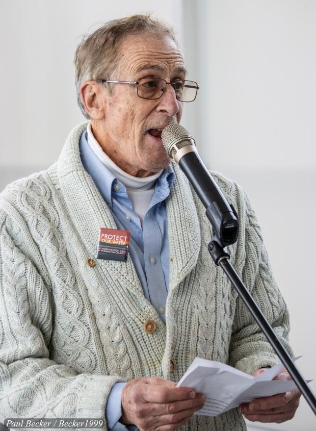 George Banziger Washington County for Safe Drinking Water told Oil and Gas Land Management Commissioners that last year six million barrels of toxic, radioactive oil and gas waste was injected into Washington County injection wells. Citizens there are worried waste migration threatens their drinking water supply. Buckeye Environmental Network is suing the Ohio Department of Natural Resources for using old, lax rules in its injection well permitting process and Marietta city council has asked Gov. Mike DeWine to declare a moratorium on injection wells in Washington County. (Paul Becker Photo)